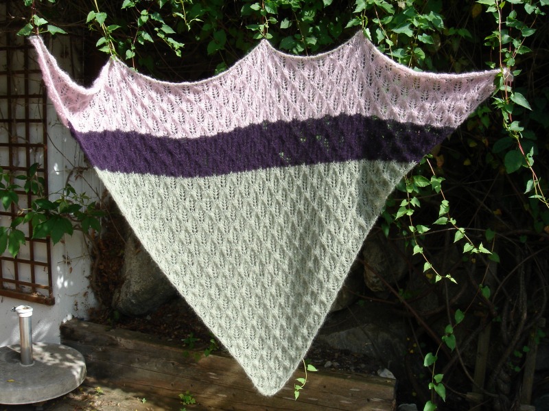 Hier das versprochene Foto des „Birch von unten“ gestrickt mit 150 g soft-kid (70% Super Kid Mohair, 25% Polyamid, 5% Schurwolle; Lauflänge: 138m – 25g) von ggh. Die Farben sind in Wirklichkeit nicht ganz so blass wie auf dem Foto.