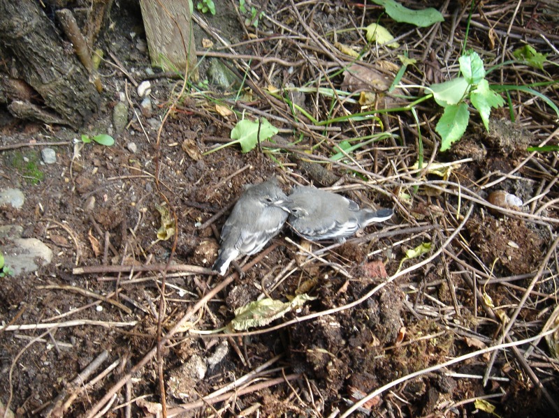 Heute war eine Vogelfamilie bei mir im Garten. Die Kleinen können noch nicht fliegen, eine Katze war schon im Anmarsch – die konnte ich gerade noch verjagen.