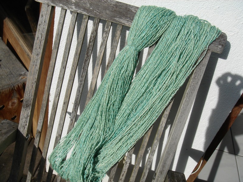 Die Sonne war gnädig und hat fürs Foto kurz herausgeschaut! Der erste Strang ist fertig verzwirnt (noch nicht gewaschen). Die Qualität der Wolle ist wunderbar weich. Ich bin mir allerdings noch nicht sicher, ob ich einen Pulli in dieser Farbe haben möchte, oder ob ich die fertige Wolle nochmals färbe. Nach einer Maschenprobe kann ich vielleicht schon mehr sagen.