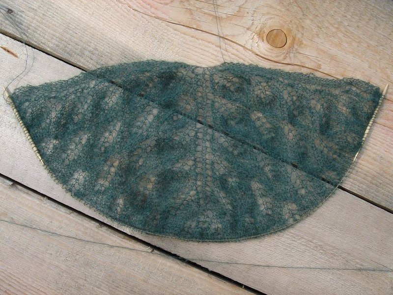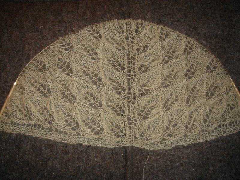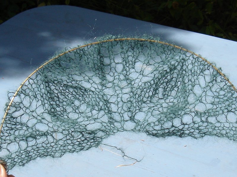 Heute in der Nacht habe ich den Kiri fertiggestellt. Um den Rand zackig erscheinen zu lassen, müsste ich den Kiri waschen und auflegen und die Ränder feststecken – dazu hab ich keine Lust. Er gefällt mir auch so. Er wiegt 70 g und ist ziemlich groß.