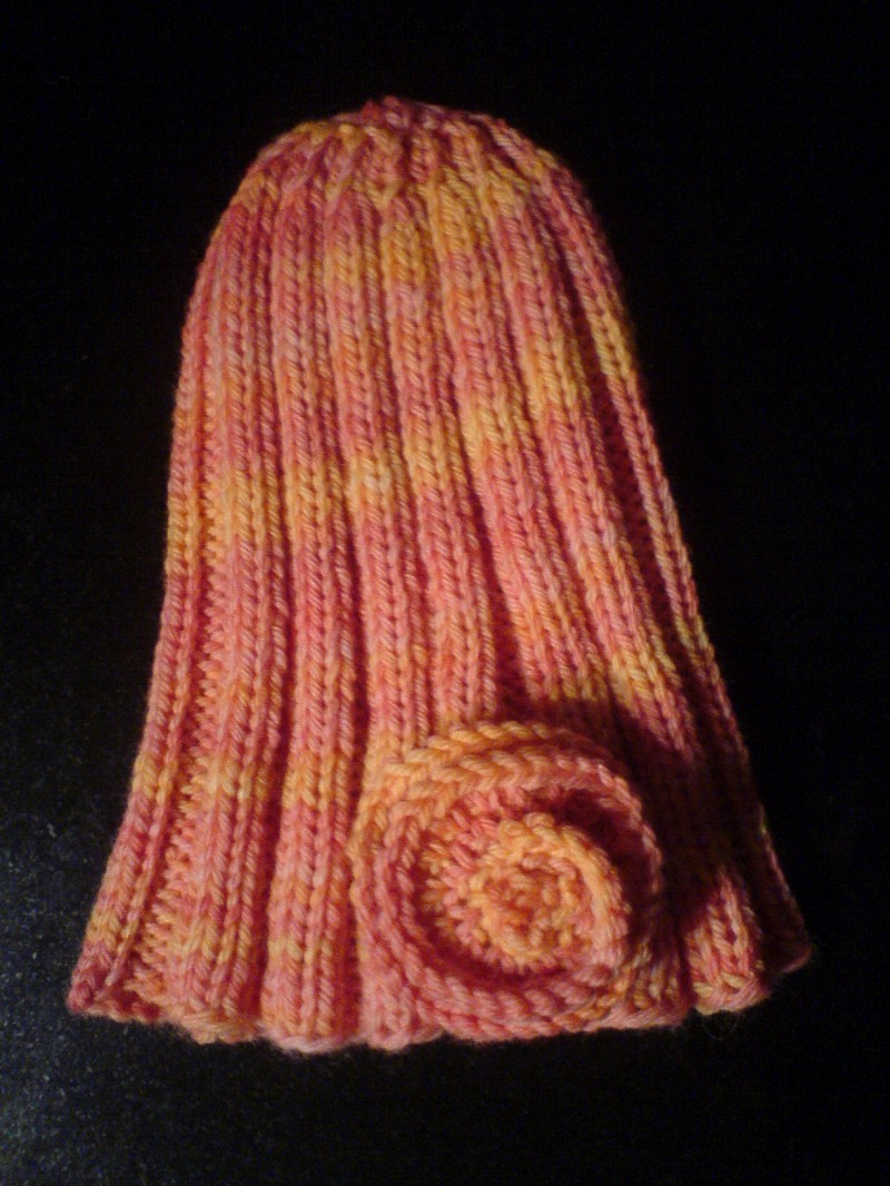 Hier die Mütze, die ich aus der mit Kool Aid gefärbten Wolle gestrickt habe. Ich hoffe, dass sie der Beschenkten gefallen wird!