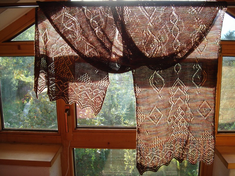 Heute habe ich das Abschlussgeschenk von meiner Wollfee bekommen. Es war Barbara – wir haben vor dieser Aktion schon Kommentare ausgetauscht. Zufällig wurde ich dann als Barbaras Wollprinzessin ausgelost. Mein Glück! Barbara hat mir eine wunderschöne Stola gestrickt! Sie ist sehr groß, wenn man sie ganz ausbreitet, sie ist sehr klein, wenn man sie ganz zusammenlegt, sie ist sehr weich, hat wunderschöne Farben – einfach ein sehr dekoratives Stück, wo auch immer sie sich gerade befindet! Und ich bin restlos begeistert. Vielen Dank, Barbara! Da fällt mir ein, ich hab ja noch 2 Päckchen herrlichen Tee bekommen und noch ganz besondere Schokoladen. In meiner Aufregung mit der Stola hab ich Tee und Schokolade gar nicht mehr fotografiert – ich freu mich aber auch darüber sehr!