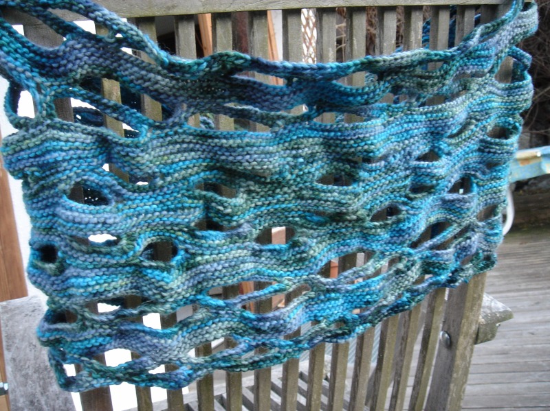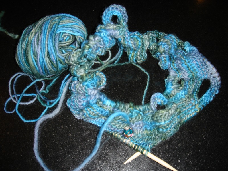 Soeben habe ich die lizard ridge Decke fertiggestellt. Ich muss sie allerdings noch ein bisschen dämpfen, dann noch das Foto machen. Ich schätze, dass es bis Freitag so weit sein wird, dass ich das fertige Stück hier zeigen kann. Inzwischen stricke ich am Möbius Wrap weiter.