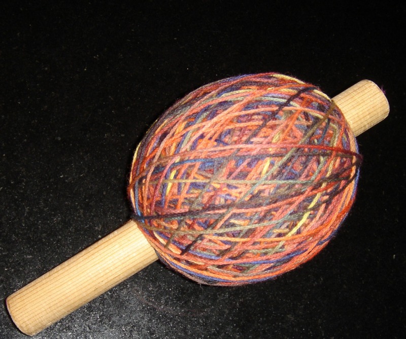 Seit ich bei Astrid gelesen habe, dass man sein Garn auch ohne Garnwickler so aufwickeln kann, dass man den Faden von innen herausholen kann, mach ich das immer so – und es ist sehr praktisch:
