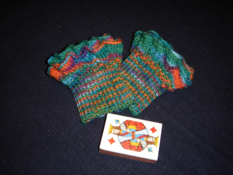 Diese Pulswärmer bekommt unser Nachbarskind vom Christkind. Die Streichholzschachtel dient dem Größenvergleich.