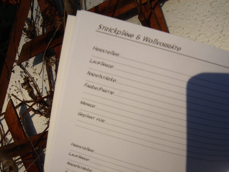 Gestern war eine Überraschung für mich bei der Post! Astrid hat mir ihr Erstlingswerk geschickt – ein hübsches, praktisches Büchlein, um mehr Übersicht über das Woll-Lager zu bekommen, Strickdaten festzuhalten und ein kleines Nachschlagewerk für Daten, die man sonst immer erst googeln muss. Vielen Dank, liebe Astrid, ich hab mich sehr darüber gefreut!