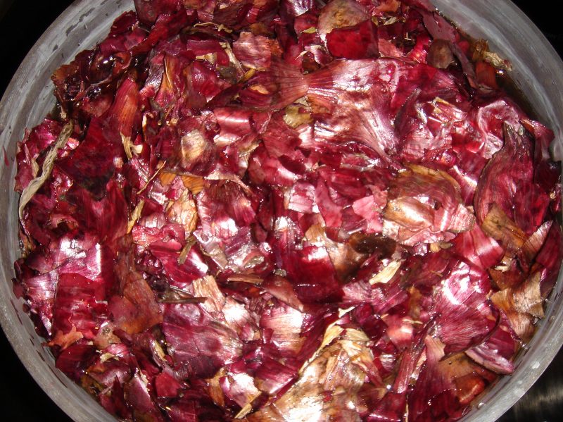 Wolle und Seide mit roten Zwiebelschalen gefärbt