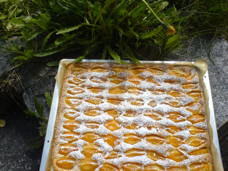 Und schon längst fertig ist auch der Marillenkuchen, den ich gestern gebacken habe: