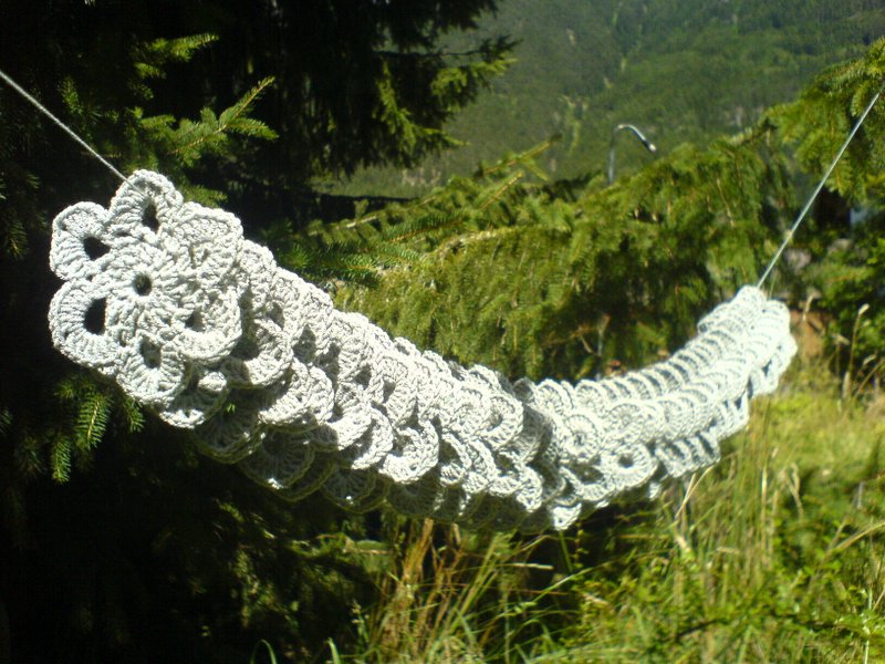 Jetzt bin ich dabei, die Saumbordüre zu häkeln.