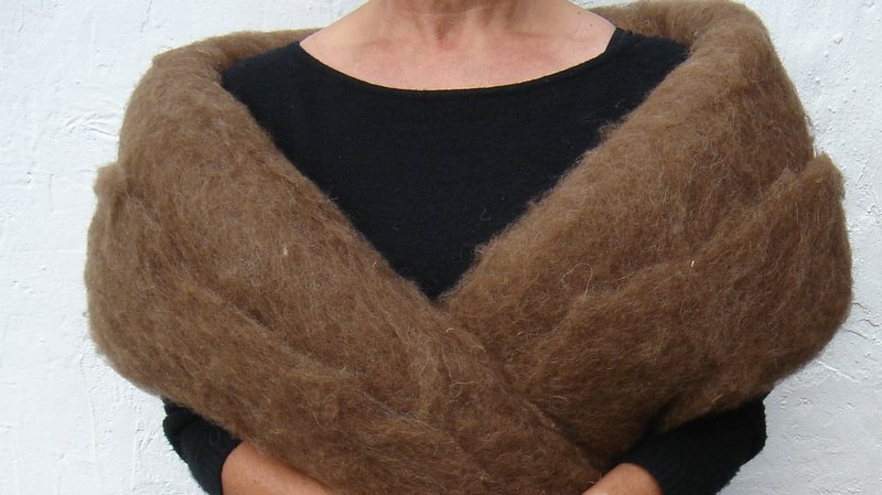 Ich hab versucht, das Tuch relativ locker zu weben, indem ich die Kette eher unregelmäßig gespannt habe.