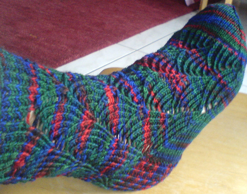 Ich bin gerade dabei, die Pomatomus Socken zu stricken. Einer ist schon fertig: