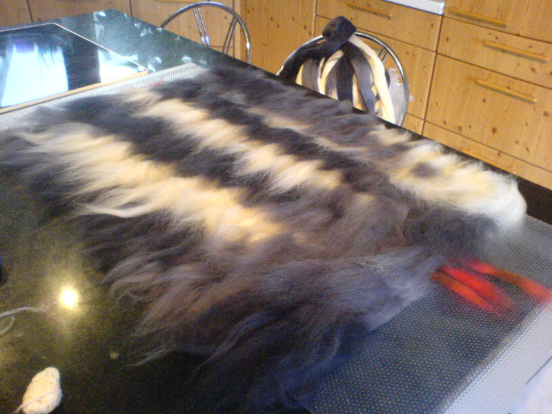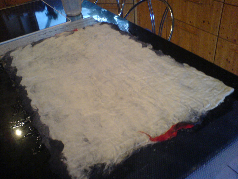 Jetzt noch eine zweite Schicht Wolle in anderer Richtung drübergelegt: