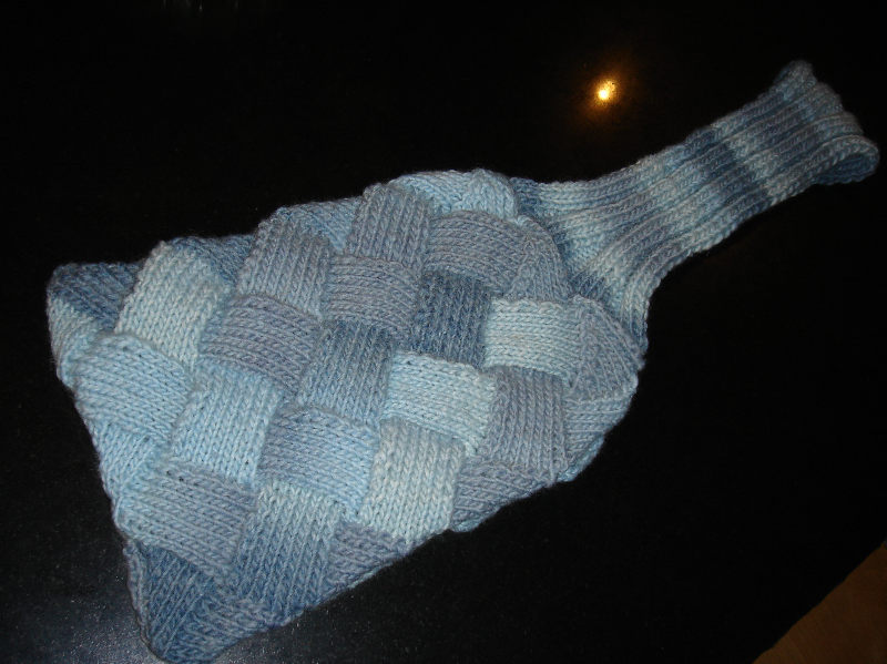 Ich wollte mich ein bisschen in der entrelac – Technik versuchen. Eigentlich sollte es ein Schal werden, doch plötzlich war’s dann eine Tasche. Auch gut.