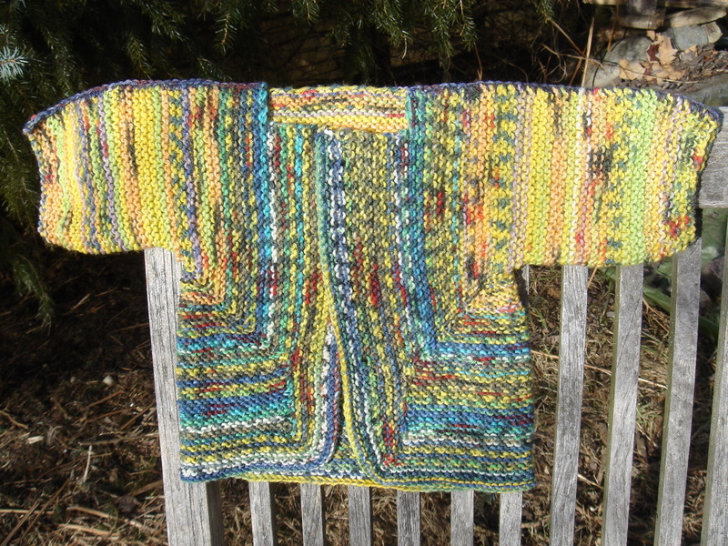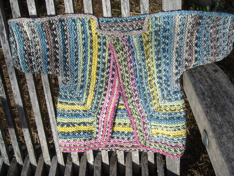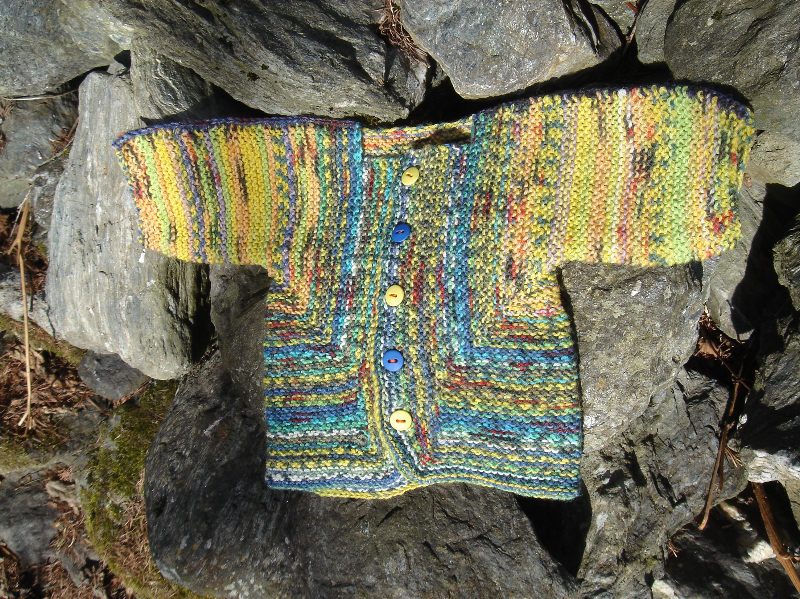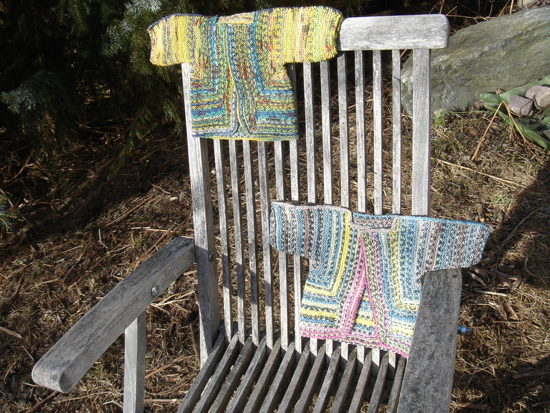 Um Reste von Sockenwolle zu verbrauchen, habe ich die bsj von Elizabeth Zimmermann gestrickt. Und weil’s so schön war gleich im Doppelpack – eine kleinere mit Nadeln Nr. 3 und eine etwas größere mit Nadeln Nr. 3,5. Es gibt bei dieser Jacke nur eine einzige Naht, die befindet sich an der Oberseite der Ärmel. Das ist schon ein genialer Schnitt.