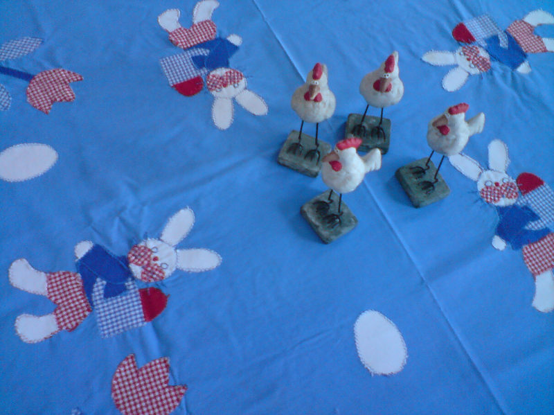 Diese Tischdecke habe ich vor mehr als 20 Jahren genäht, als die Kinder noch klein waren. Immer zu Ostern darf sie sich wieder sehen lassen.
