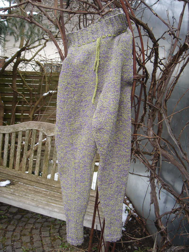 Nun ist sie fertig, meine Hose nach Elizabeth Zimmermann. Ich hab noch eine Kordel gestrickt und eingezogen. Sie ist sehr bequem und ich liebe sie. Das war sicher nicht die letzte Hose, die ich gestrickt habe, ich denke, ich werde irgendwann noch eine mit einer dünneren Wolle stricken.