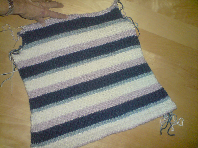 Nachdem ich die bonsai tunic aufgetrennt hatte, weil sie mir nicht gefallen hat, wollte ich mit der Wolle – silkdream von Lang – doch wieder was stricken. Ich hab dann einen Pulli ohne Anleitung angefangen und werde nicht so recht fertig damit. Aber vielleicht hilft’s, wenn ich einmal ein Foto davon zeige: