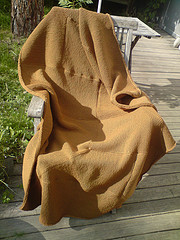 Den Rand hab ich mit einer i-cord verstärkt. Jetzt kann ich mich auf den Winter freuen, denn die Decke hält sicher sehr, sehr warm. Zur Ansicht gibt’s die Vorderseite: