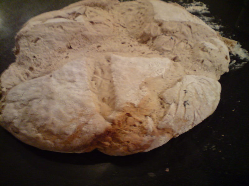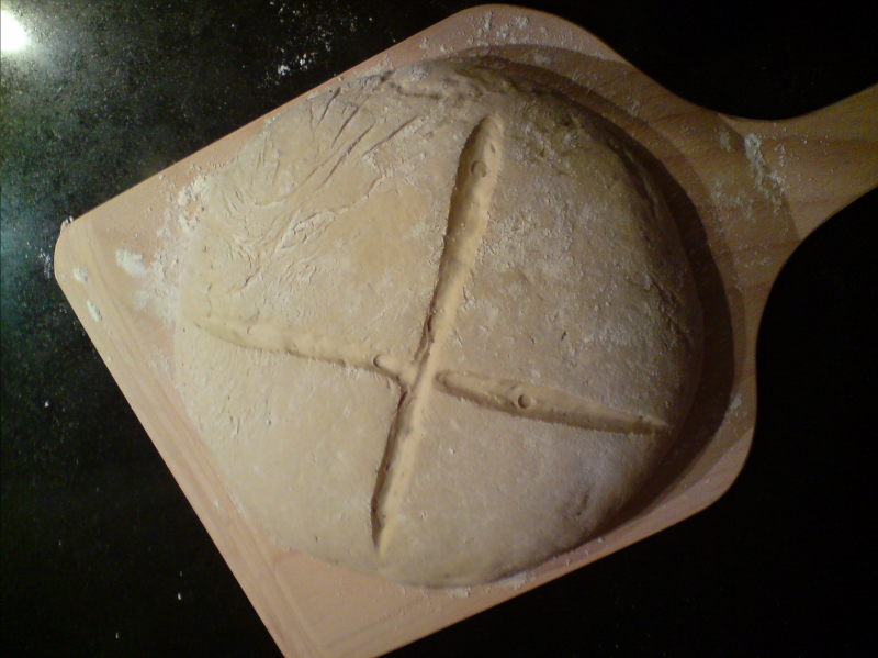 Ich habe das Brot anscheinend bei zu wenig Hitze bereits (ungeduldig) in den Ofen gegeben – das Ergebnis war, dass es nach ein paar Stunden immer noch teigig war. Aber die gebackenen Ränder haben gut geschmeckt. Der nächste Versuch folgt nach meinem Urlaub.
