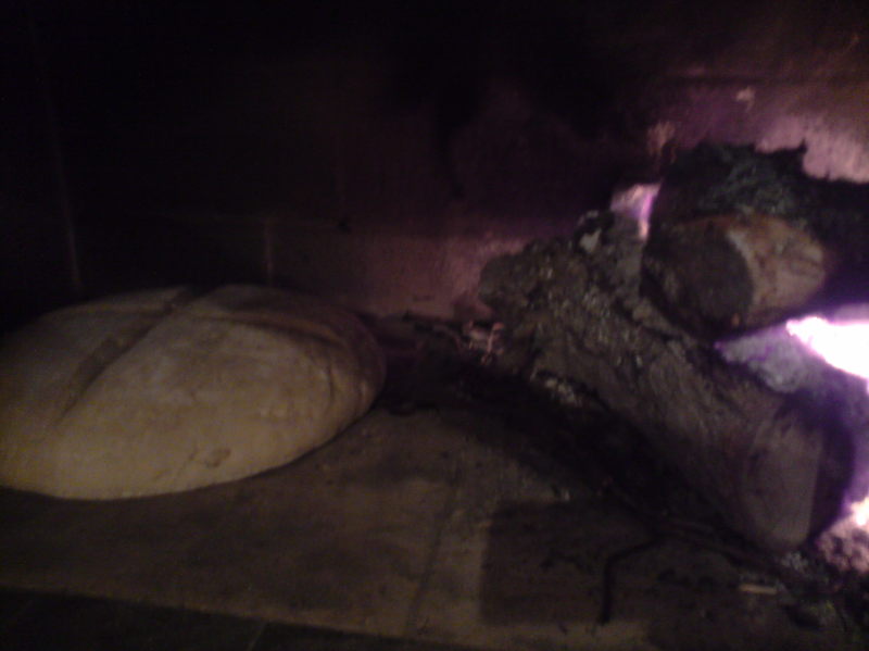 Wir haben in unserem Wohnzimmer seit ein paar Wochen einen gemauerten Ofen. Wir möchten damit einerseits das Haus heizen und andererseits – und das ist uns ganz, ganz wichtig – Brot backen. Jetzt ist der große Moment gekommen: Das erste Brot befindet sich im Ofen. Ich hab ein Bierbrot gemacht – mit Dinkelmehl, mit Roggenmehl und mit Bier natürlich. Ich hab keine Ahnung, welche Temperaturen im Ofen herrschen, es ist einfach der erste Versuch in diesem Ofen – ich bin schon sehr gespannt, ob das Brot essbar sein wird. Es ist jetzt seit 40 Minuten im Ofen. Bitte Daumen halten!