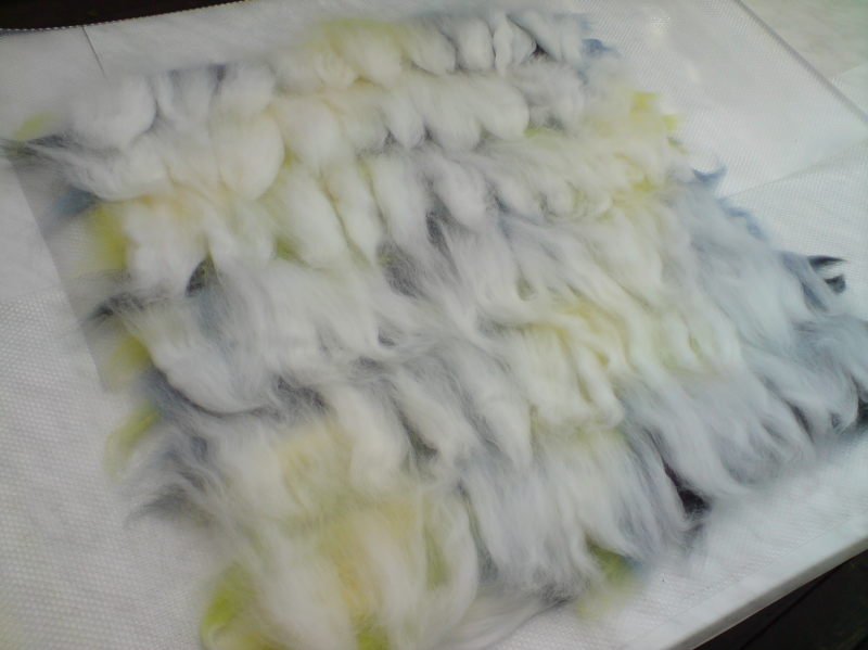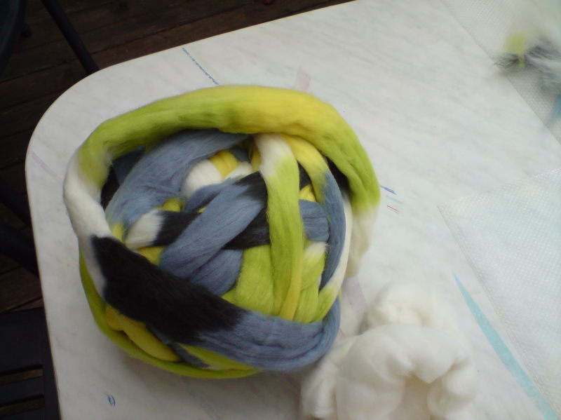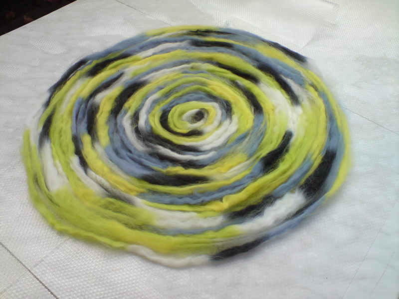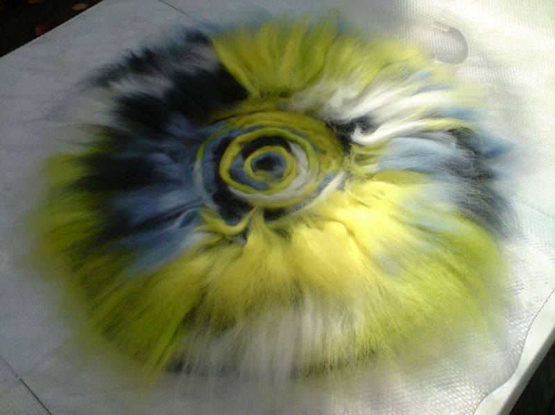 Mit meiner handgesponnenen Wolle hab ich eine Babyjacke aus dem knitter’s almanac von Elizabeth Zimmermann gestrickt.