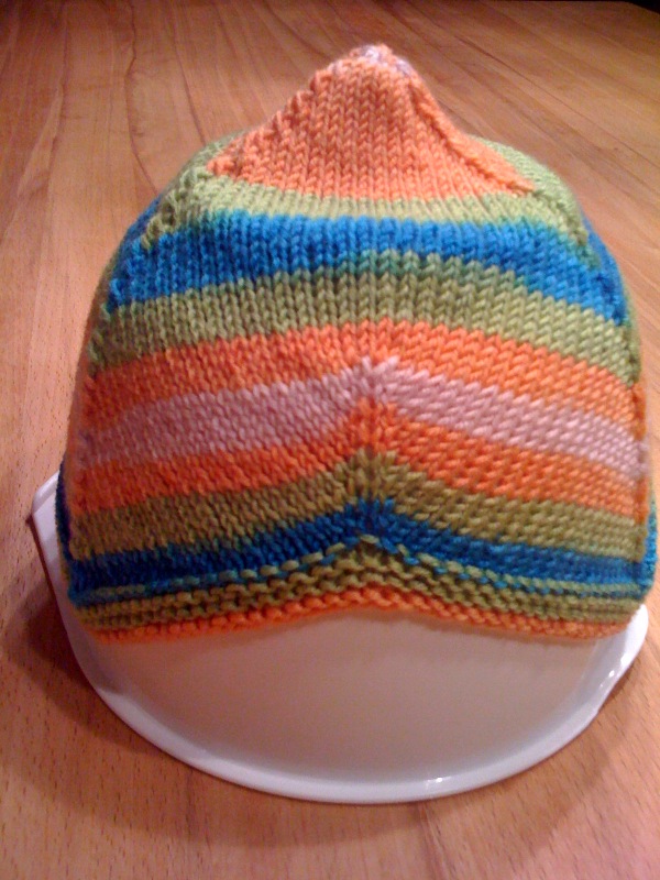 Daraus hab ich für ihr zukünftiges Enkelkind gleich ein Teufelsmützchen gestrickt: