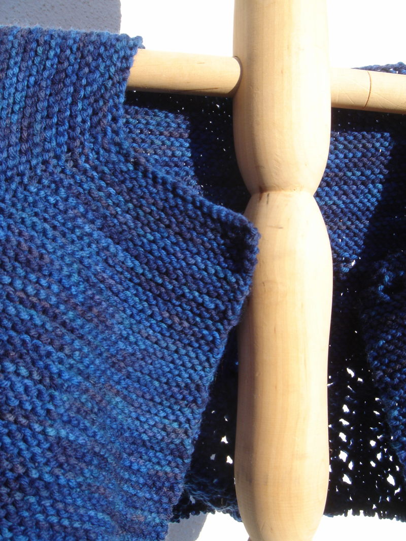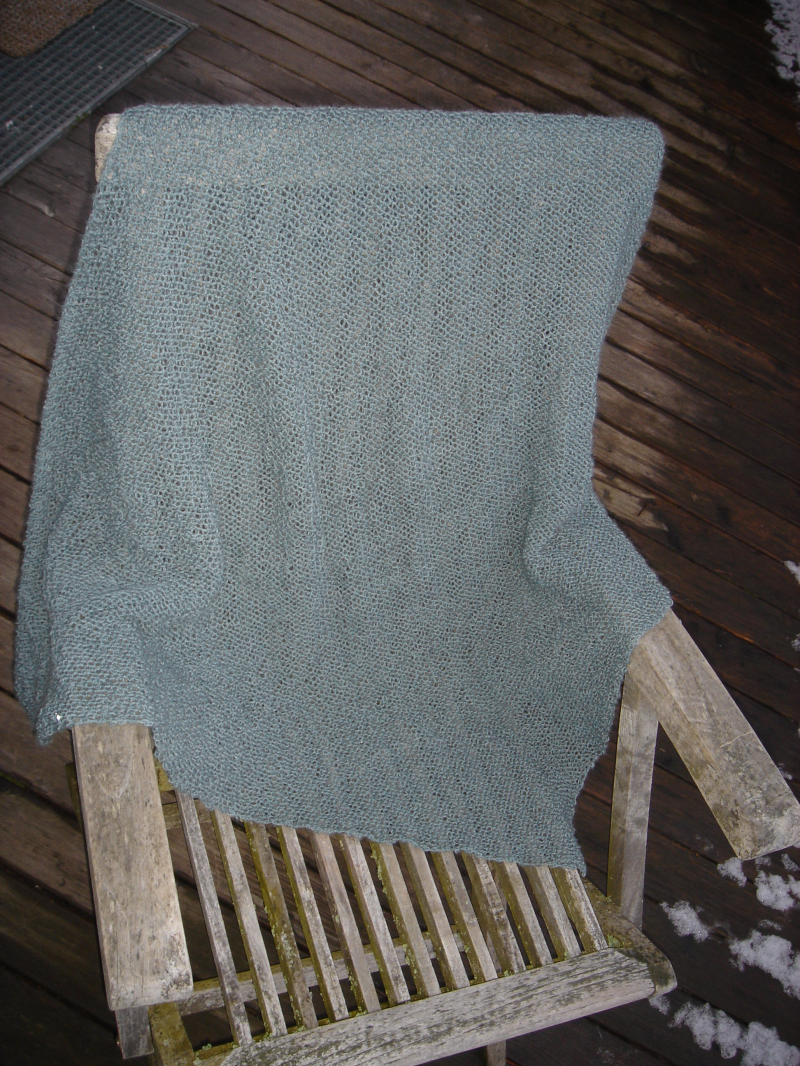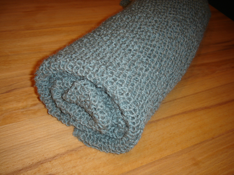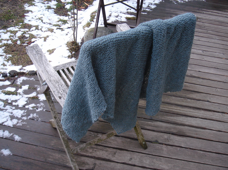 Wolle: 4 Knäuel Drops Alpaca (100% Alpaca), Nadeln: Nr. 6, Größe: 80 x 80 cm, Muster: alles glatt rechts / diagonal