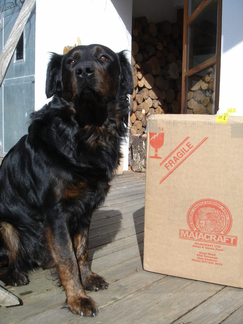 Es ist eingetroffen! Juhuuuuu! Nach nur 6 Tagen Lieferzeit kam gestern diese wertvolle Fracht direkt aus Neuseeland – sofort gut bewacht von unserem Hund.