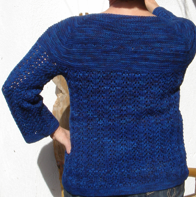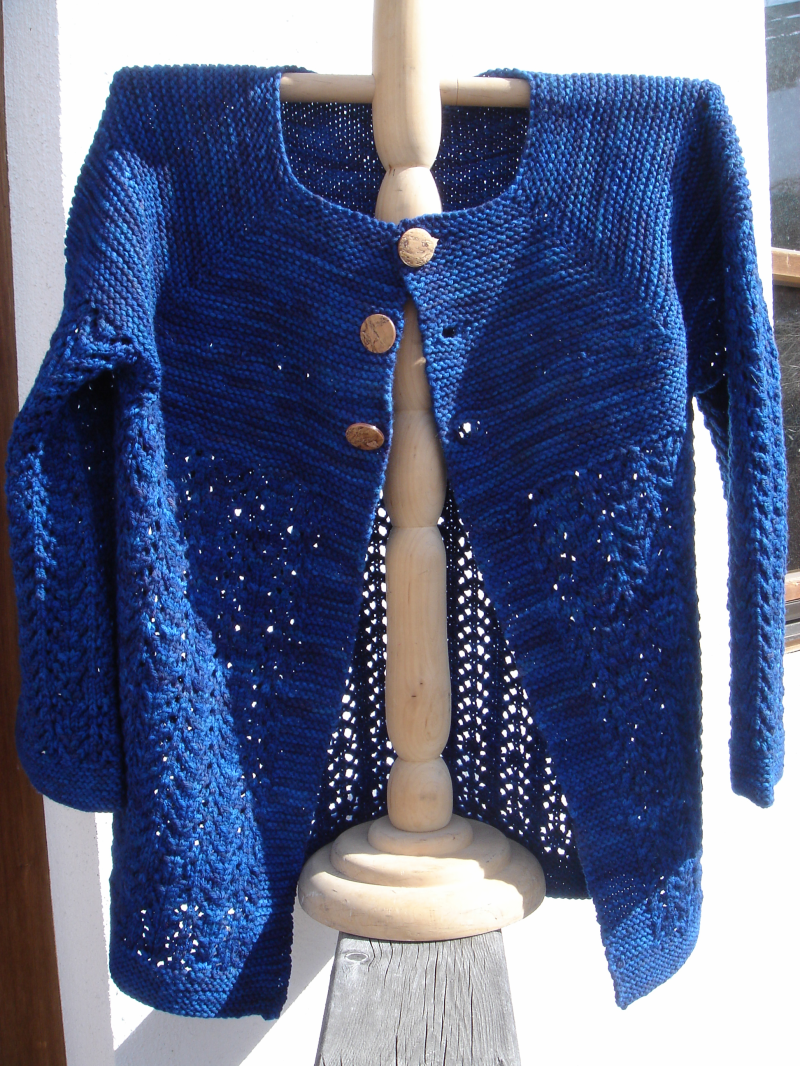 Jetzt ist meine Jacke fertig. Gestrickt in Classy von Dream in Color – handgefärbte Wolle – Verbrauch ca. 500 g. Nach dem Waschen wurde die Jacke etwas größer – zum Glück, ich habe nämlich Größe S gestrickt. Die Anleitung gibt es hier.