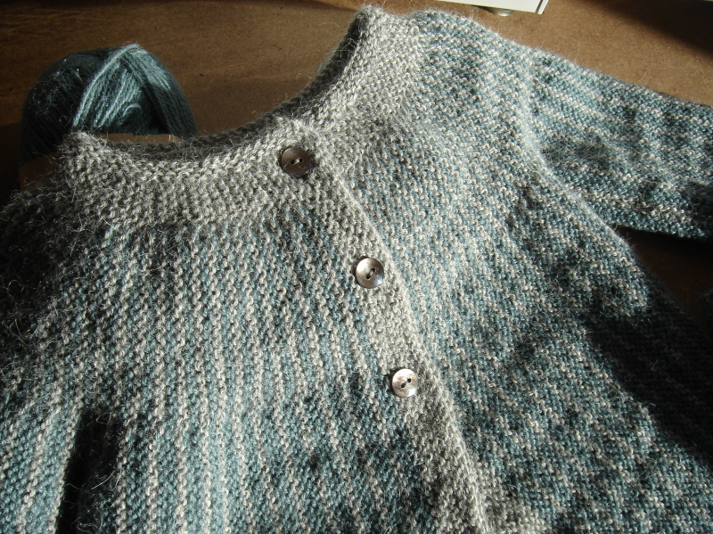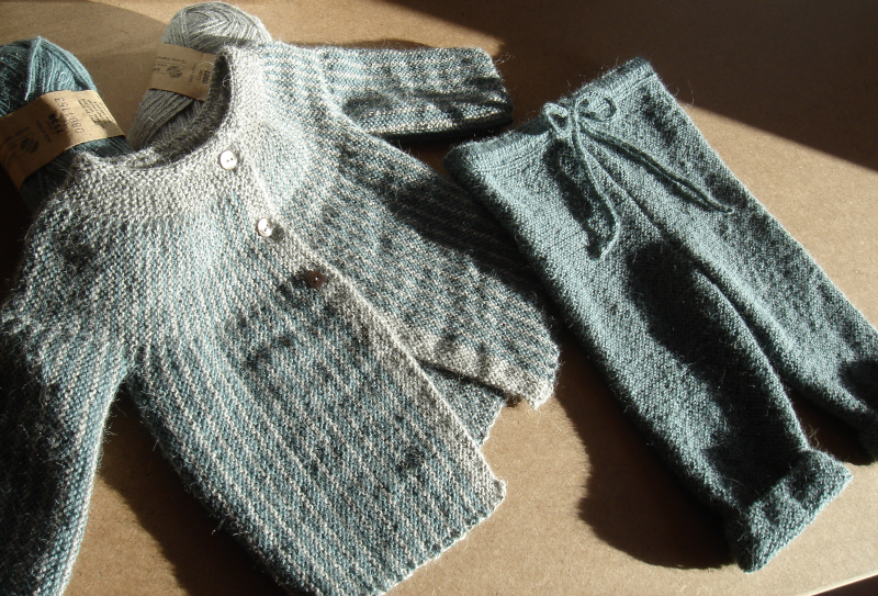 Aus Alpacawolle von Drops habe ich eine Babyjacke und -hose gestrickt. Die Anleitung gibt’s hier.