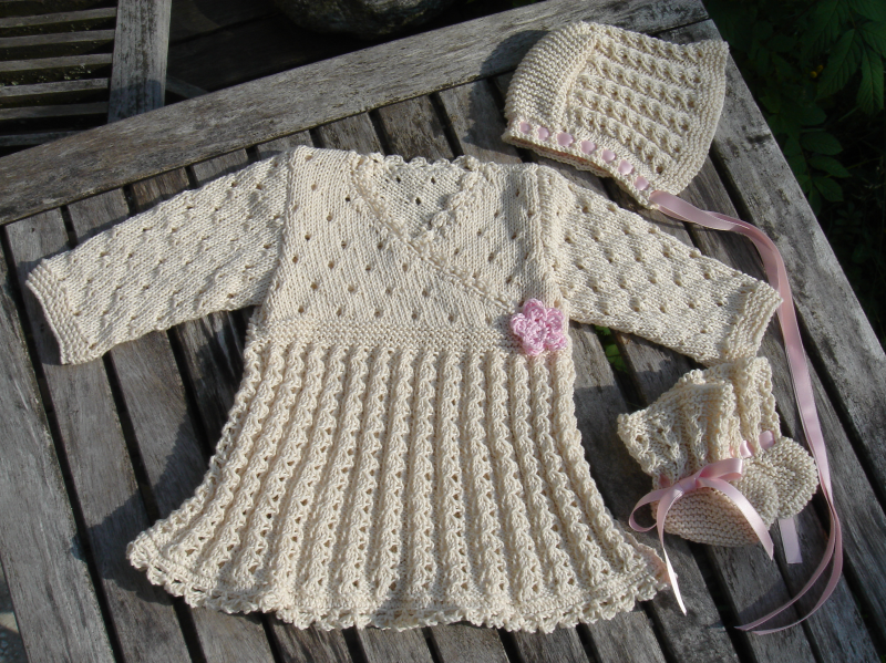 Dieses Baumwollkleid habe ich für mein Enkelkind zur Taufe gestrickt. Die Anleitung gibt’s hier!
