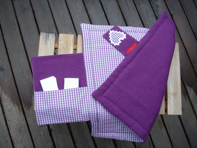 Heute hab ich das schlechte Wetter genutzt und eine Auftragsarbeit genäht – eine Reisewickelunterlage für’s zukünftige Baby meiner Tochter. Sie hat sich den Stoff ausgesucht – lila Leinen für außen und für innen einen karierten Baumwollstoff. Zwischen den beiden Stofflagen befindet sich Vlies, damit das Baby weicher liegt. Im Kopfteil ist eine Tasche angebracht, damit sie dort noch etwas aufbewahren kann. Die Unterlage misst ca. 50×50 cm, wenn sie ausgebreitet ist (Kopfteil natürlich extra), nach dem Zusammenlegen und Verschließen mit einem Klettverschluss misst sie noch 29 x 24 cm. Ich hoffe, das Kind freut sich (das große UND das kleine).