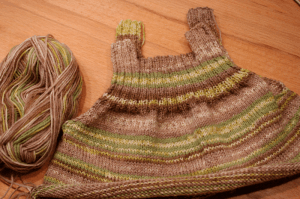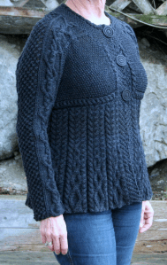 Vor ein paar Tagen habe ich nun endlich meine Jacke fertig gestrickt.Ich habe einige Dinge aus der Anleitung verändert, habe keinen Kragen, sondern einen runden Halsausschnitt gestrickt, außerdem habe ich die Ärmel enger gestrickt. Mit dem Ergebnis bin ich zufrieden. Ich habe 12 Knäuel Merinowolle von Lang gebraucht.