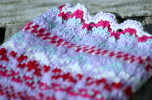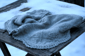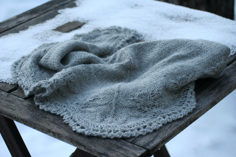 Nachdem ich das letzte Tuch verschenkt habe, habe ich mir jetzt ein gleiches aus 100% Alpakawolle gestrickt. Es wiegt 86g und wärmt ganz ausgezeichnet.