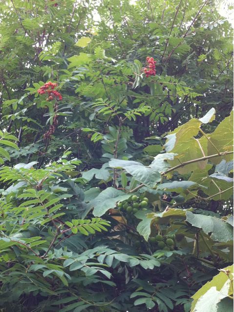 Die Trauben wachsen in der Eberesche, der Efeu in der Garage und am Weg zum Kompost muss man sich durch Glyzinienschoten arbeiten.