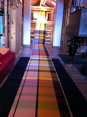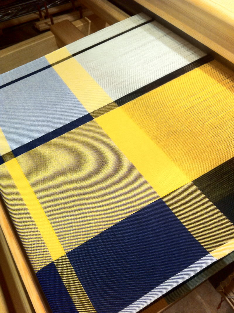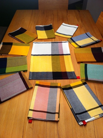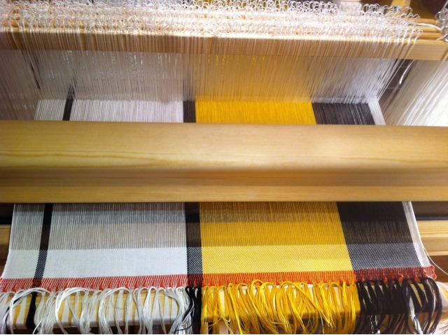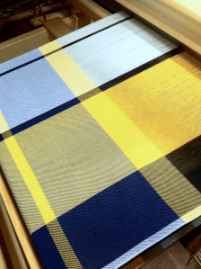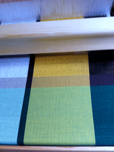 Am Webstuhl experimentiere ich mit verschiedenen Farben – hier bei Geschirrtuch Nummer 3 und 4: