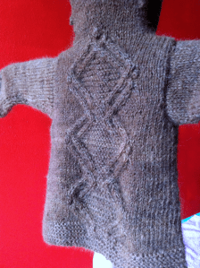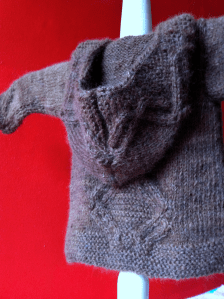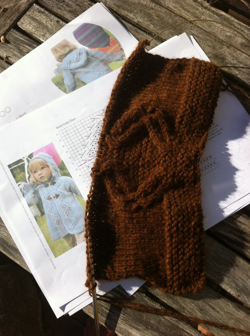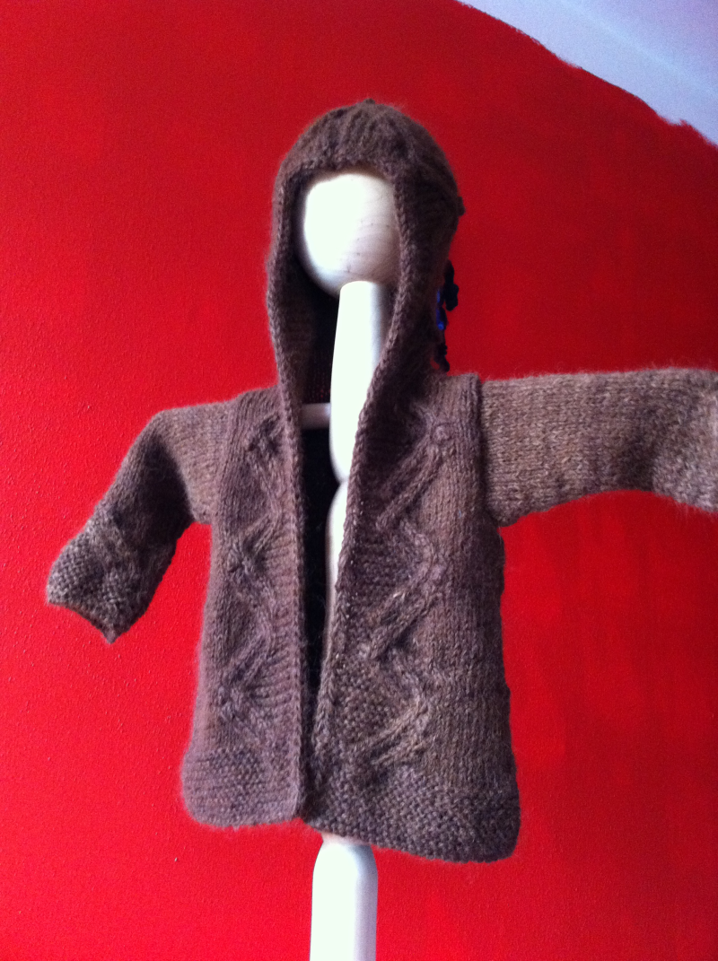 Diesen Mantel stricke ich zur Zeit mit der handgesponnenen Babyalpakawolle für mein Enkelkind: