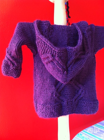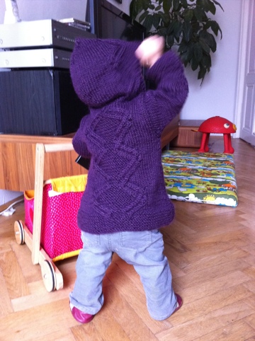 Nachdem aus dem letzten Mantel ein Pulli gemacht wurde, weil er als Mantel fast zu klein war, hab ich aus pflaumenfarbener Wolle von Drops – Silke Alpaka (80% Babyalpaka, 20% Seide) – noch einen Mantel gestrickt. Als Verschluss habe ich einen Reißverschluss eingenäht.
