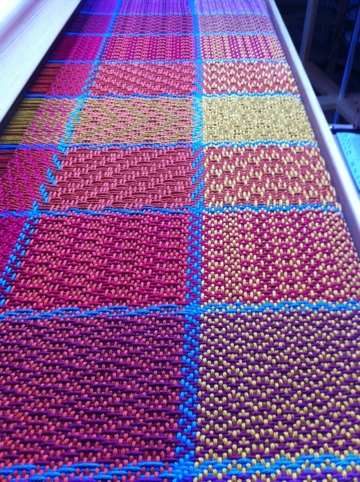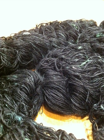 Aus einer Mischung aus Merino und Tencel habe ich Singlegarn gesponnen, das sich im Moment noch recht stark kräuselt. Ich werde sehen, wie stark es sich nach der Wäsche noch kräuseln wird. Sollte es ziemlich kraus bleiben – auch kein Problem, dann verwebe ich es trotzdem und freue mich auf einen ganz besonderen Stoff. Vielleicht sollte ich es gar nicht waschen und gleich verweben……