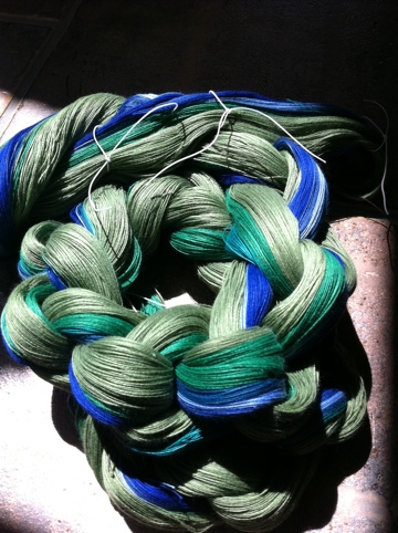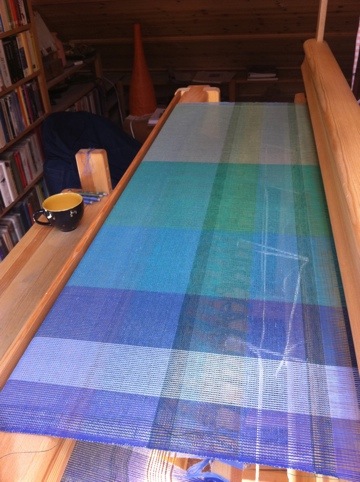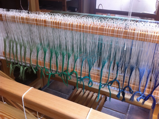 Beim Entwurf für die Farbfolge meiner neuen Kette – bestehend aus 824 Baumwollfäden – habe ich mich an das Fibonacci System gehalten. Es wird erst sichtbar werden, sobald ich die Kette aufgebäumt habe. Das Endergebnis soll ein Kleiderstoff in Halbleinen werden. Ich bin jedenfalls gespannt.