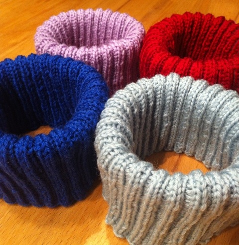 100% Wolle, mit Alaun gebeizt, mit Cochenille gefärbt und nach dieser Anleitung mit Nadeln 4,5mm gestrickt.