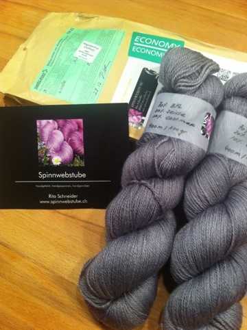 Heute war ein Paket aus der Schweiz im Postkasten, über das ich mich SEHR gefreut habe! Ich habe bei Rita zu Weihnachten 200g eines sehr sehr edlen Garns gewonnen! Vielen Dank, liebe Rita, ich bin begeistert von der herrlichen Qualität der Wolle. Jetzt dürfen die beiden Stränge erst einmal ruhen und das Regal schmücken – bis ihre Zeit kommt.