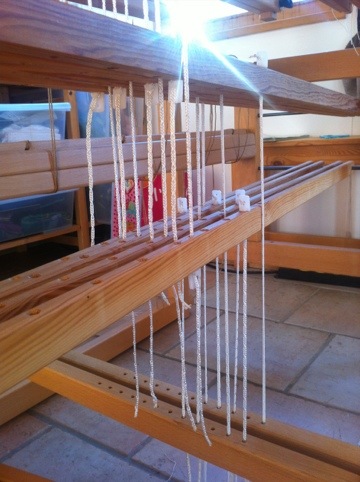 Jetzt müssen die gekämmten Fasern noch durch ein kleines Loch in einem Plättchen gezogen werden (dizzing):