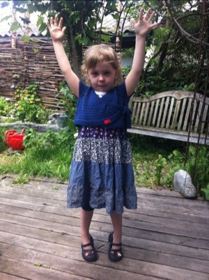 Für Ainhoa habe ich eine Sommerjacke mit kurzen Ärmeln gestrickt.