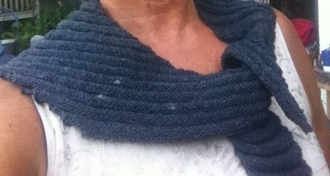 So heißt der Schal, den ich in Admiral Bambus von Schoppel Wolle mit Nadeln Nr. 3 gestrickt habe. Ein schnelles, hübsches Geschenk.