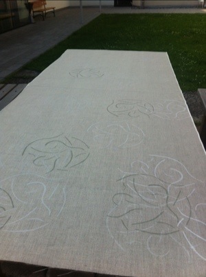 Zur Zeit mache ich einen Siebdruckkurs. Ich habe Leinenstoffe nach eigenen Entwürfen bedruckt. Diese Technik gefällt mir. Ich überlege mir, ob ich mir ein Sieb kaufe, weil man das ganz gut auch daheim machen kann.