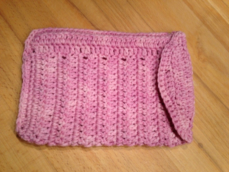 Ich hatte noch einen Strang Wolle übrig, die ich mit Cochenille gefärbt habe. Da habe ich ganz schnell ein Kindle-Täschchen damit gehäkelt.