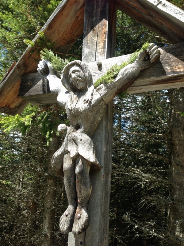 Dieses schon sehr alte Kreuz steht am Weg zu einer Alm, die wir immer wieder einmal besuchen. Und weil ich die Schnitzarbeit ganz besonders originell finde, wollte ich sie Euch zeigen.