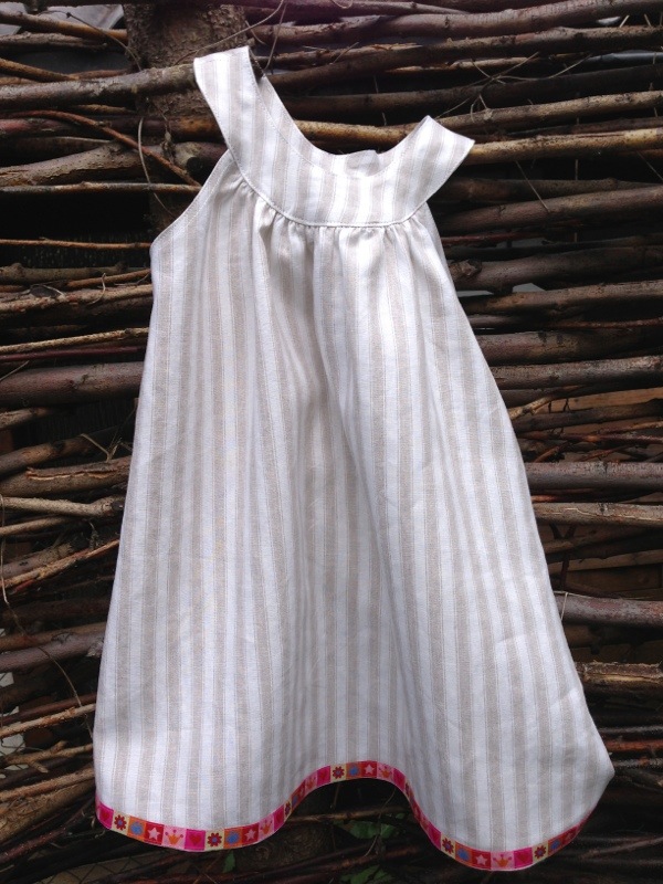 Ich habe einen Leinenstoff verwendet und am Saum eine hübsche Borte angenäht.
