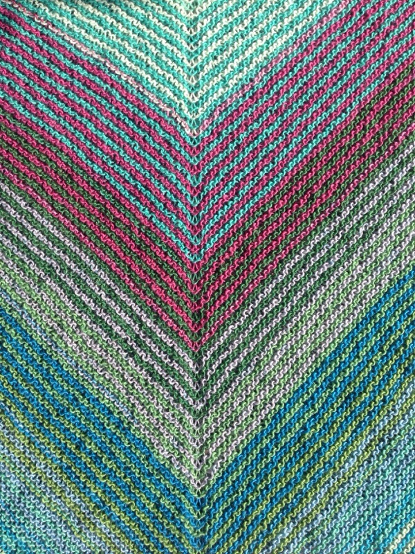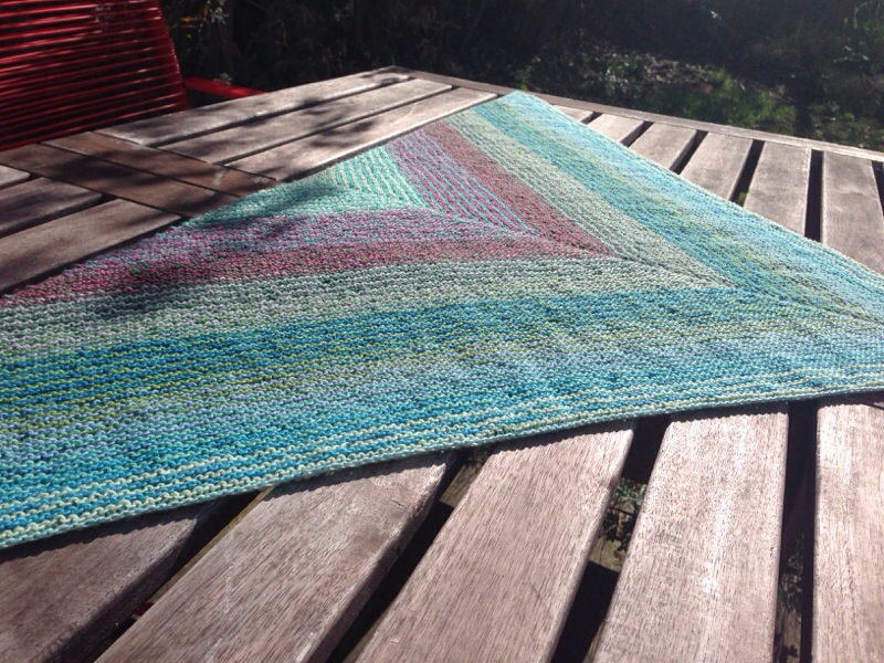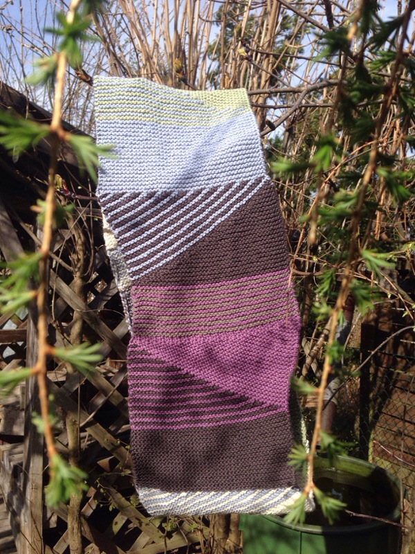 Ich wollte unbedingt einmal Kauni Effektgarn ausprobieren, weil mir der sanft übergehende Farbverlauf so gut gefällt. Das Garn (100% Wolle) ist gar nicht weich, sondern recht kratzig – was mir nichts ausmacht. Außerdem habe ich gelesen, dass es nach dem Waschen anscheinend weicher wird.